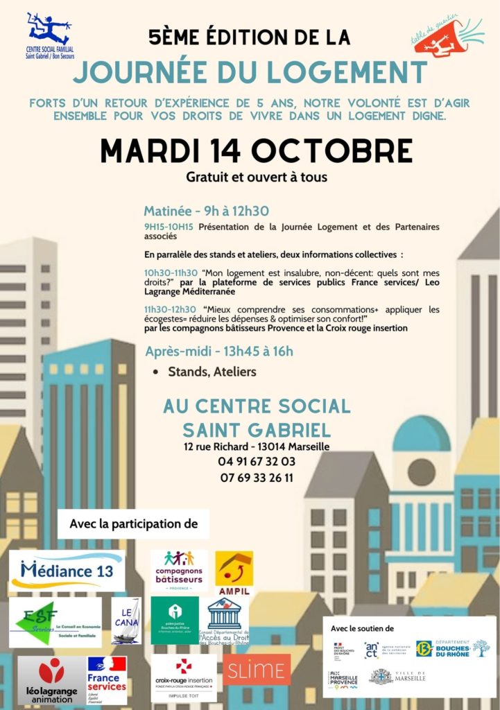 Si vous avez des difficultés pour trouver les solutions à des problèmes avec votre logement, ou si vous connaissez des voisins qui habitent dans des conditions trop compliquées, venez ou dites leurs de venir dès 9 heures le 14 octobre dans le 14e à l’association située au 12 rue Richard, le centre social St Gabriel.