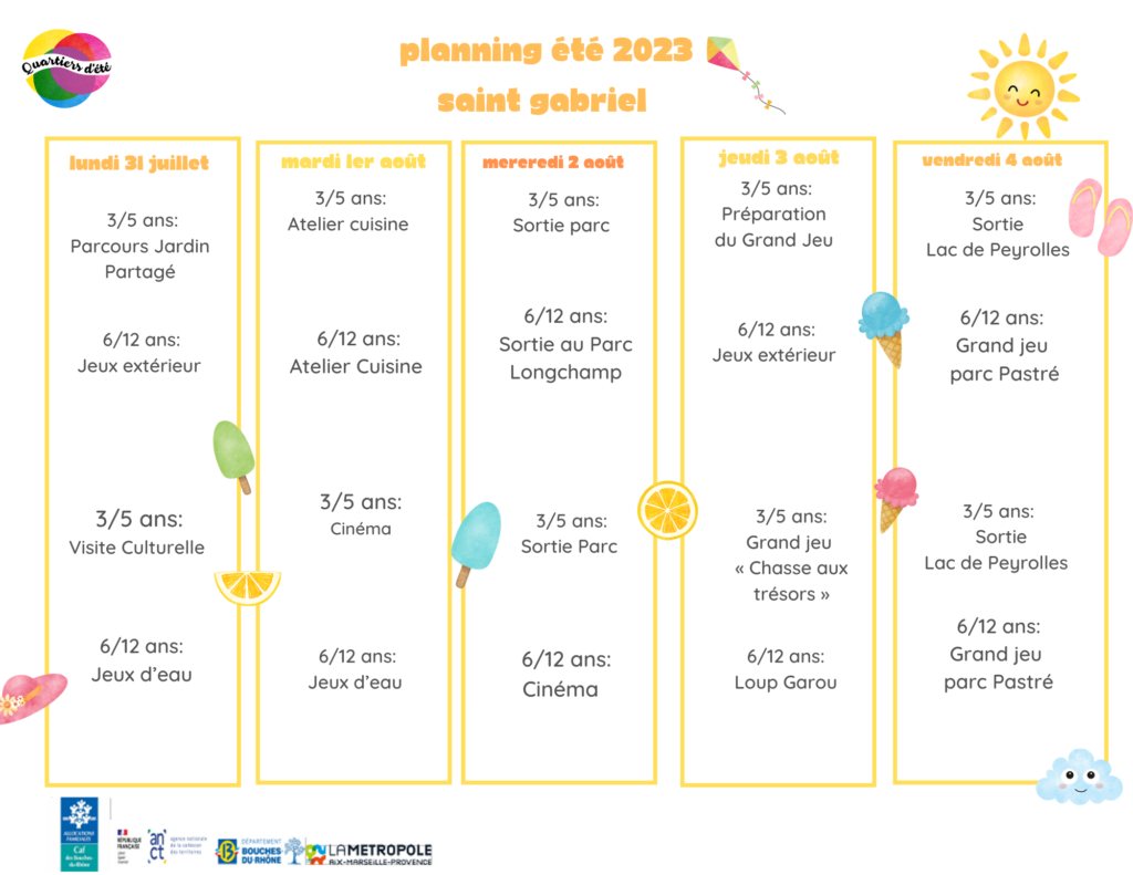Voici le programme pour les semaines du 10 juillet au 14 juillet et du 17 juillet au 21 juillet pour l’ACM enfant