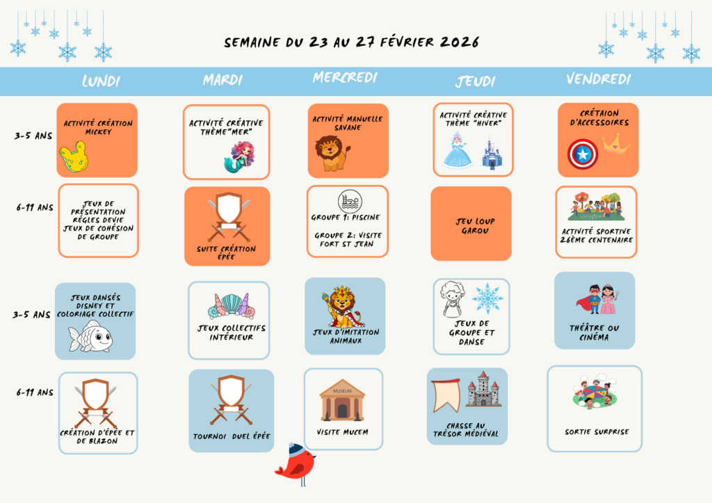 Programme 2ème semaine vacance